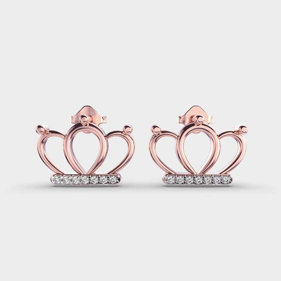 ต่างหูเพชรทรงรอยัลคราวน์ดีไซน์ ทำจากทอง 9k สีเหลือง / ขาว / โรสโกลด์ | เครื่องประดับผู้หญิงสุดหรูแบบ OEM