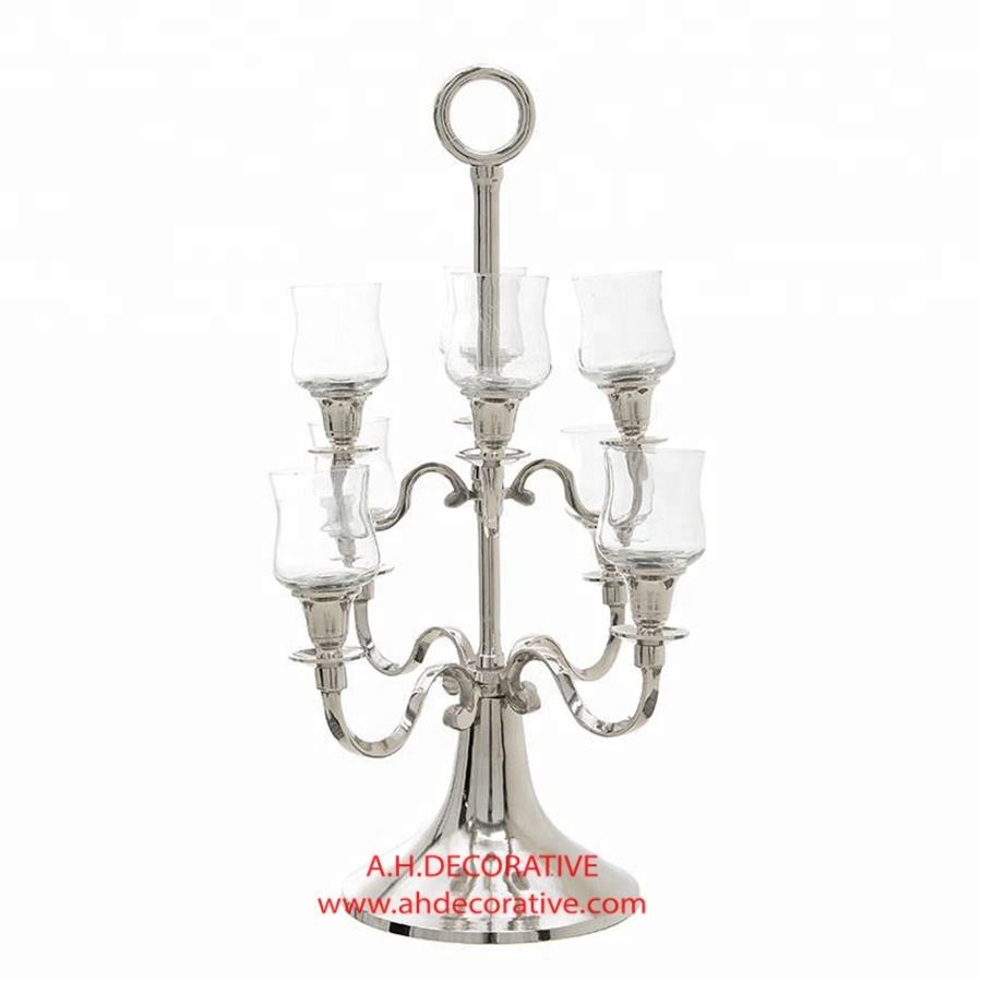 เชิงเทียนคริสตัลชุบทองดีไซน์หรูเชิงเทียนทำมือสำหรับโรงแรมและของตกแต่งงานแต่งงาน