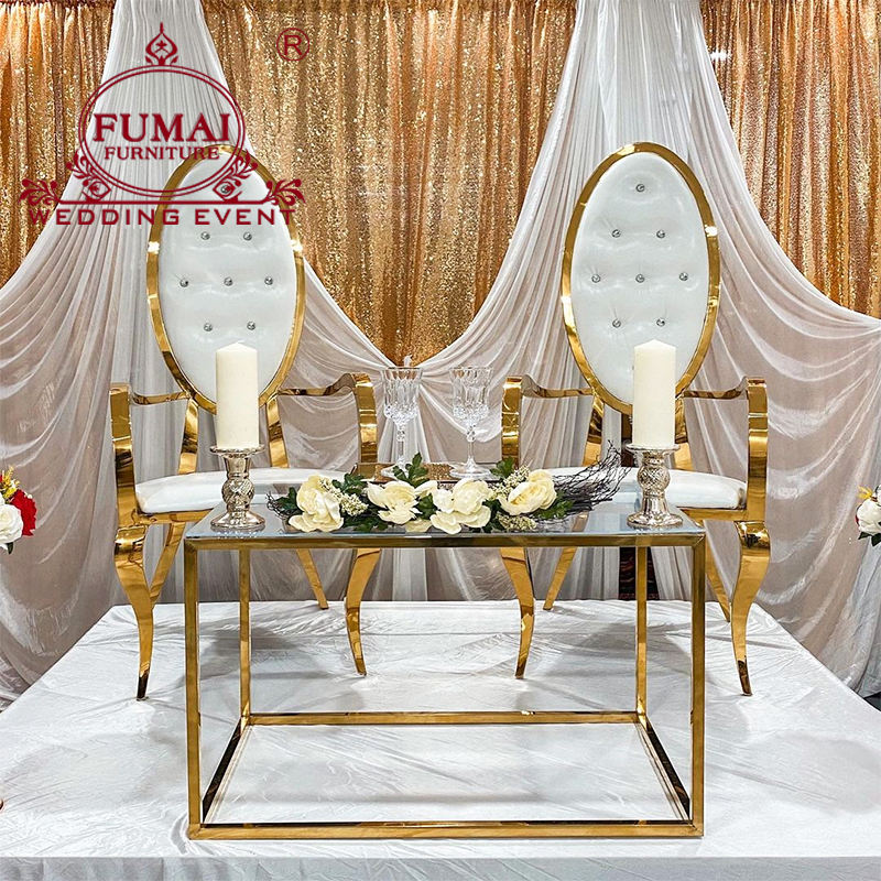 เก้าอี้รับประทานอาหารกรอบสแตนเลสสีทองดีไซน์แบบราชวงศ์สำหรับงานแต่งงาน