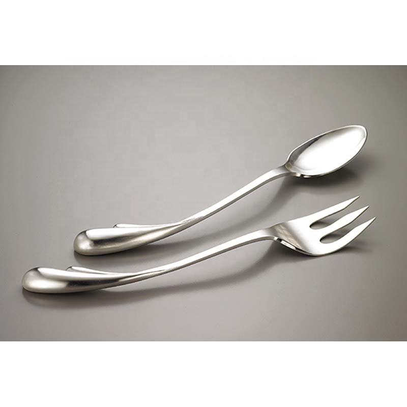 Royal Design ชุดเสิร์ฟสลัดชุบเงินด้ามหนาดีไซน์รูปคลื่นยาวทำจากสแตนเลสขัดเงาเงิน