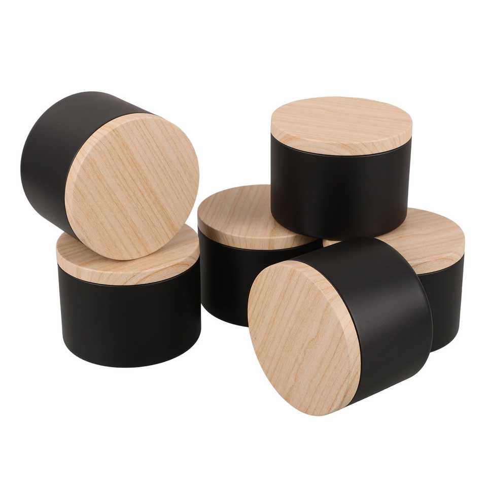 ขวดโหลเทียนโลหะพร้อมฝาปิดทำจากไม้สำหรับทำเทียนขี้ผึ้งเหมาะสำหรับตกแต่งบ้านสำนักงานโรงแรม