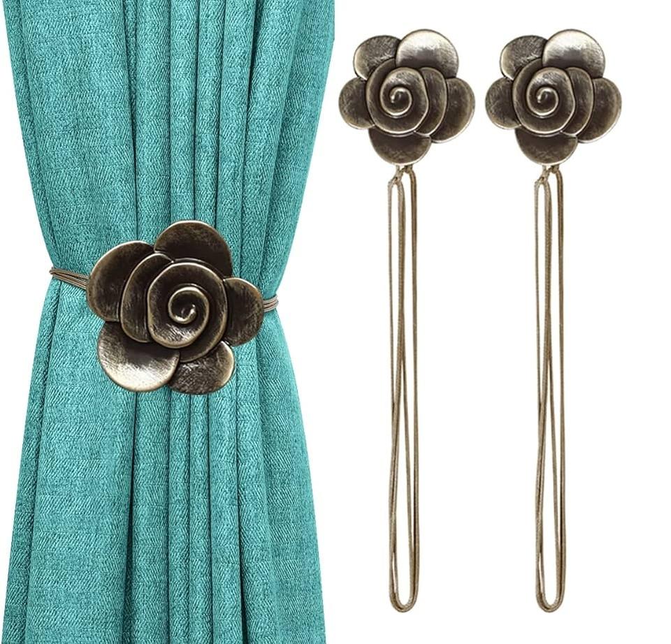 สายรัดผ้าม่านโลหะแบบราชวงศ์2ปุ่มแม่เหล็กเจาะรูสำหรับห้องนอนและห้องนั่งเล่นไม่จำเป็นต้องเจาะและติดตั้ง