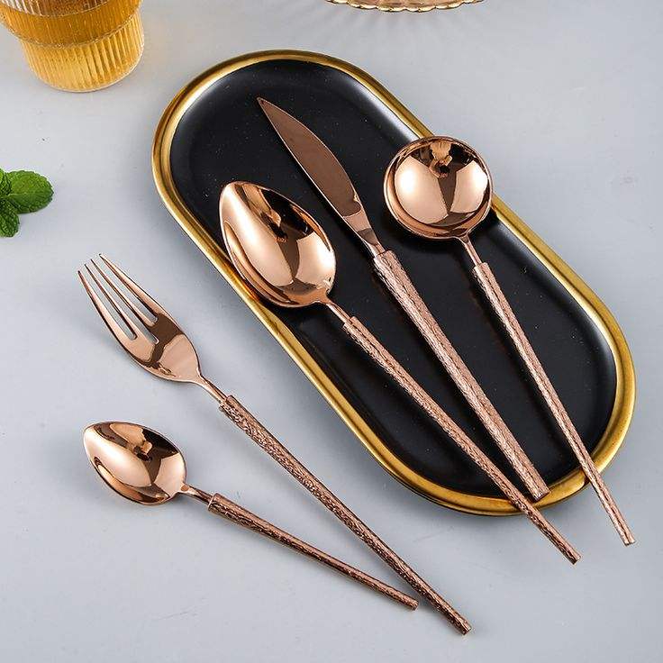 ชุดช้อนส้อมโลหะดีไซน์หรูหรา เหมาะสำหรับบ้านหรู โต๊ะอาหารขนาดใหญ่ และตกแต่งโต๊ะโรงแรม