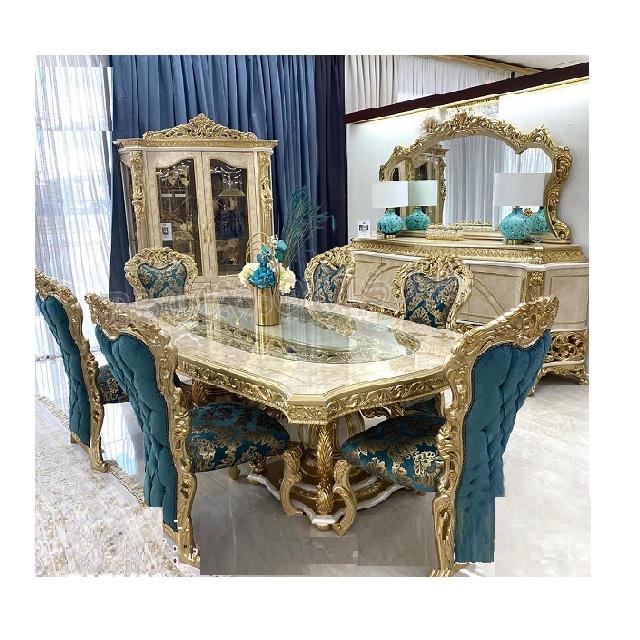 โต๊ะรับประทานอาหารทำจากไม้เนื้อแข็ง,โต๊ะรับประทานอาหารทำมือโดยเฉพาะเฟอร์นิเจอร์ห้องรับประทานอาหารไม้สักดีไซน์รอยัลสไตล์ฝรั่งเศส