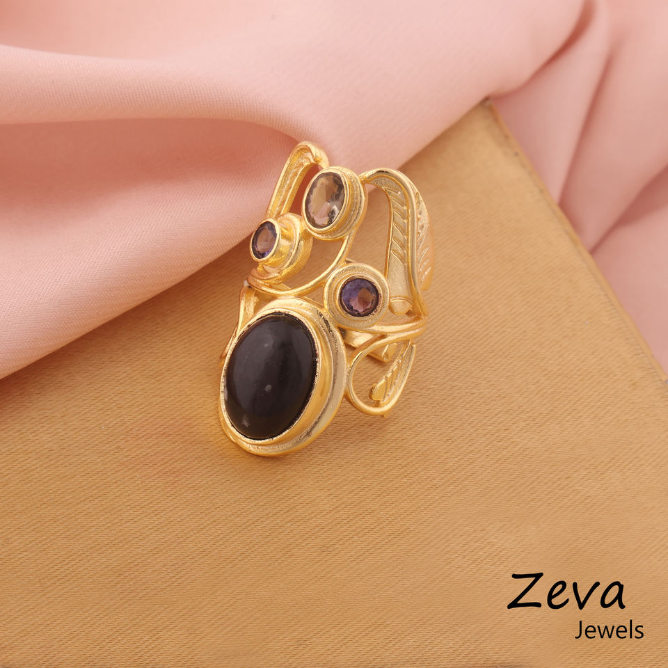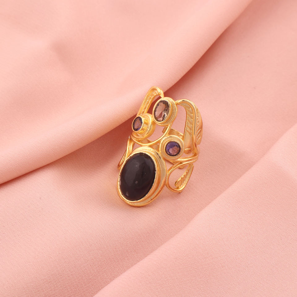 Royal ดีไซน์เนอร์แหวนใบไม้หรูหราสำหรับผู้หญิงเครื่องประดับแหวนควอทซ์เกล็ดหิมะออบซิเดียนขนาดใหญ่พร้อมทองเหลืองส่วนบุคคลสำหรับงานแต่งงาน
