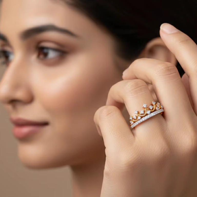 แหวนเพชรทรงมงกุฎทองคำ ดีไซน์หรูหรา ของขวัญวันครบรอบแต่งงานสำหรับเธอ