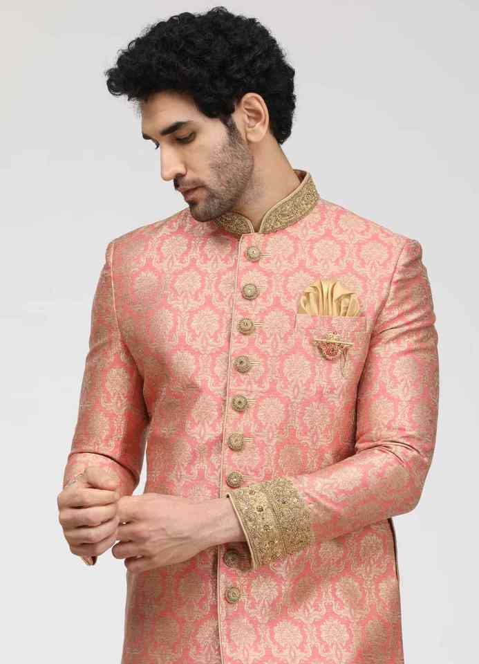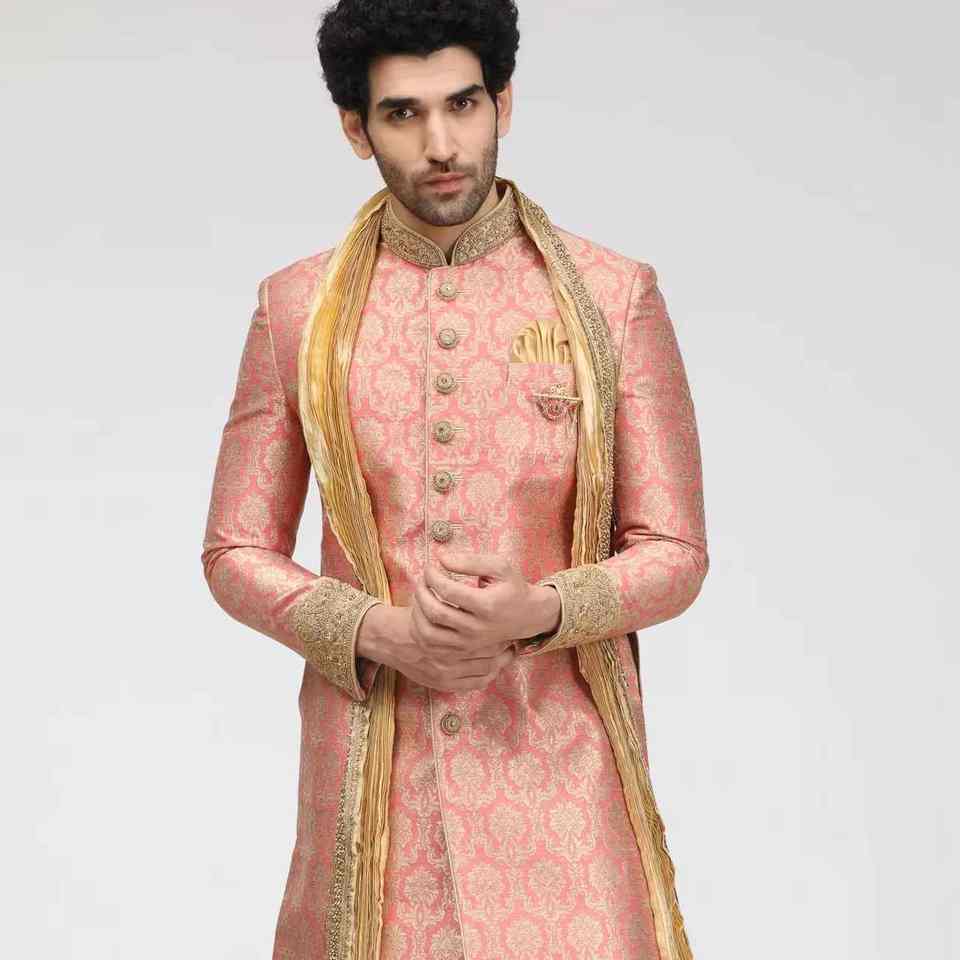 ชุดเชอร์วานีสำหรับเจ้าบ่าวแบบหรูหรา ปักลายสไตล์ปากีสถานและอินเดีย สำหรับงานแต่งงาน ผ้าไม่ยับ ป้องกันแสงแดด ใส่ได้ทุกฤดู