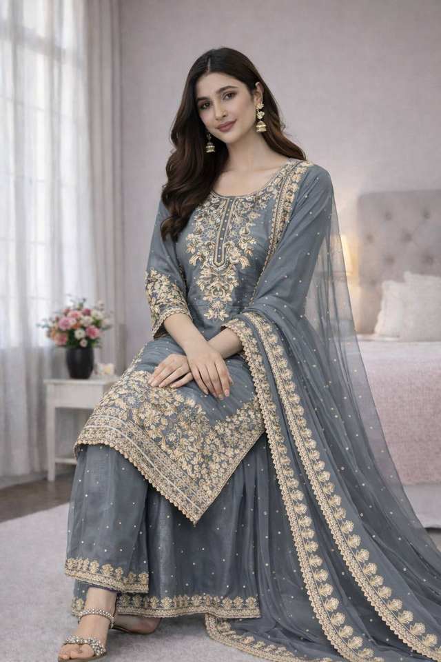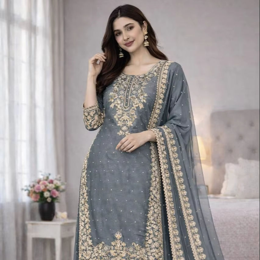 ชุดผ้าไหม GMY ลายชนเผ่าราชวงศ์ พร้อมงานปักประณีตและกางเกงทรงปาลาซโซ
