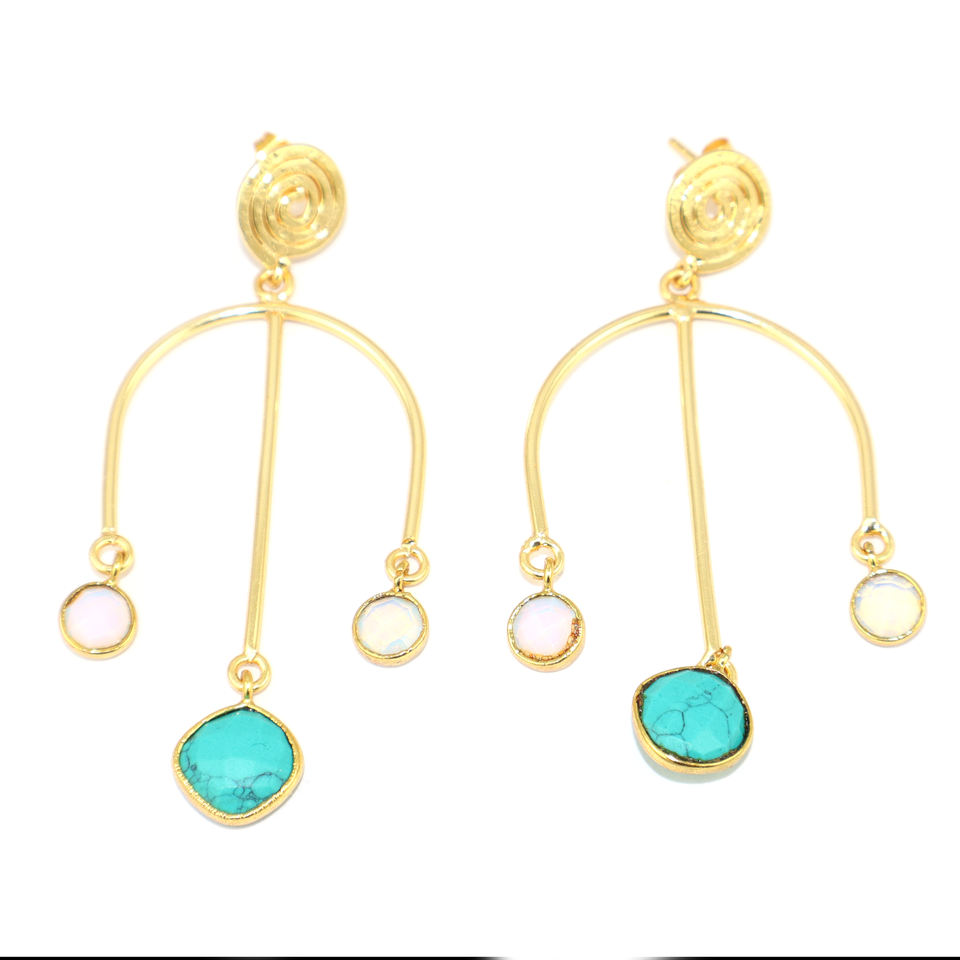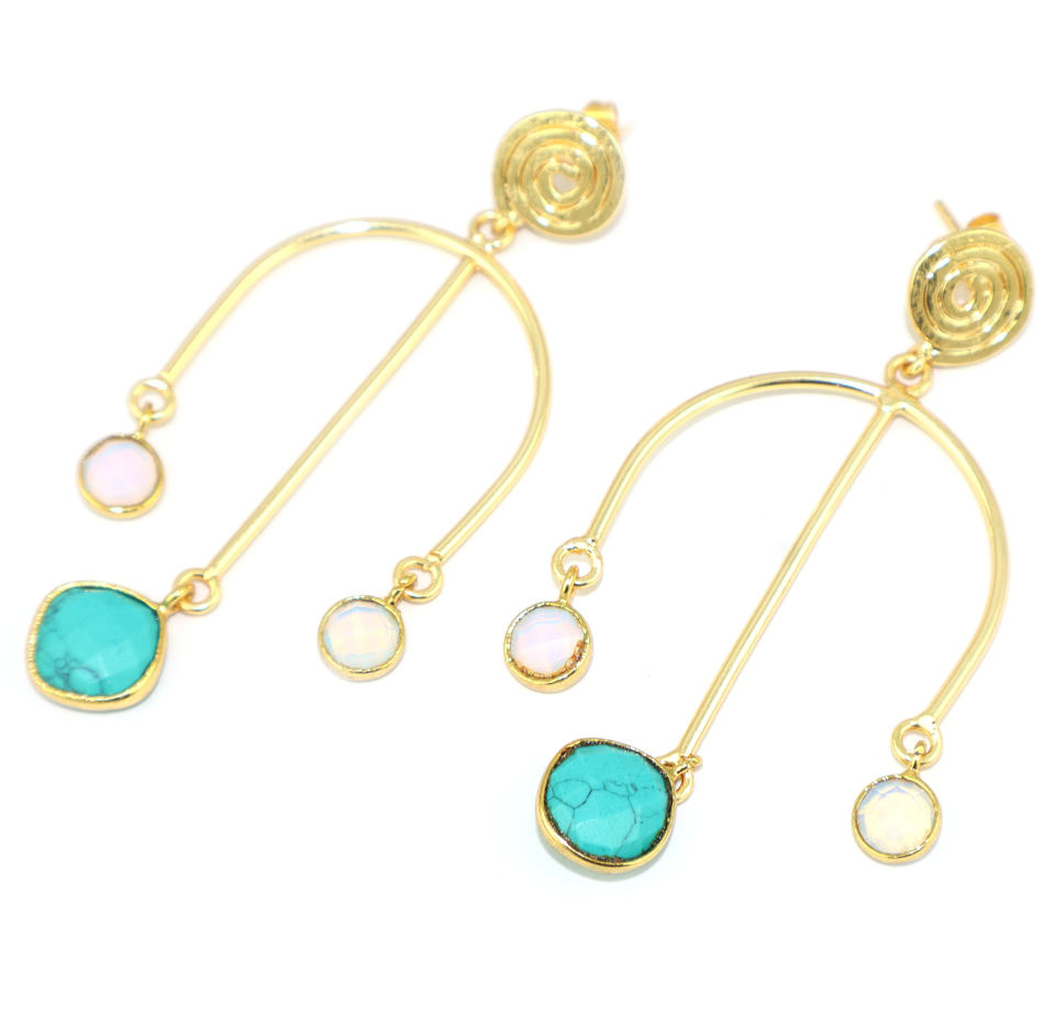 ต่างหูห้อยทรงลวดลายหรูหราประดับด้วยไฮโดรควอตซ์ทรงเช็คเกอร์คัท ดีไซน์แฟชั่นระดับพรีเมียม ชุบทอง 24K บนโลหะทองเหลือง ขายส่งสำหรับสาวๆ