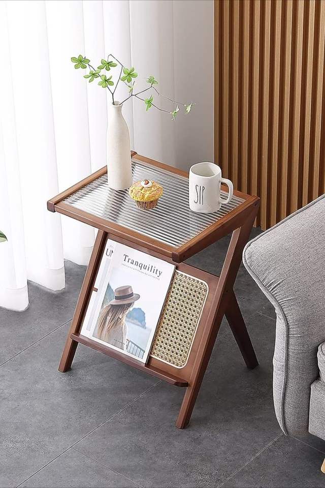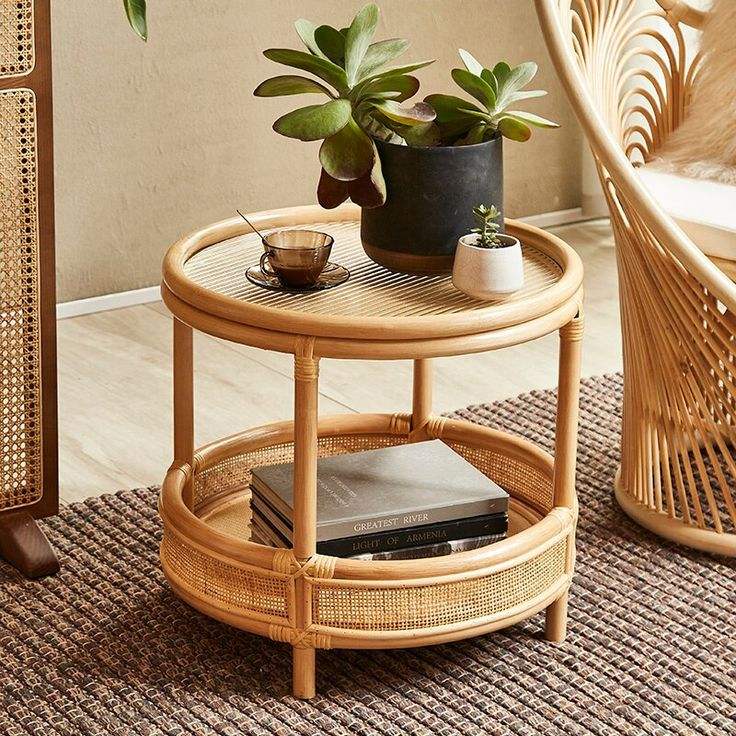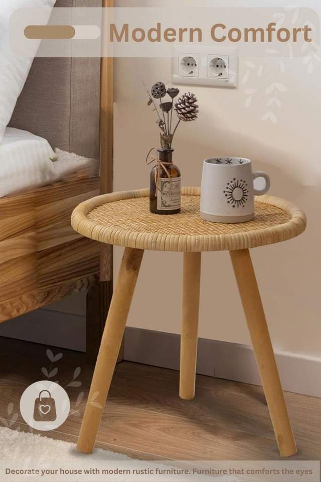 โต๊ะหวายทรงสูงทำจากหวายสีน้ำตาลอุปกรณ์เฟอร์นิเจอร์ห้องนั่งเล่น
