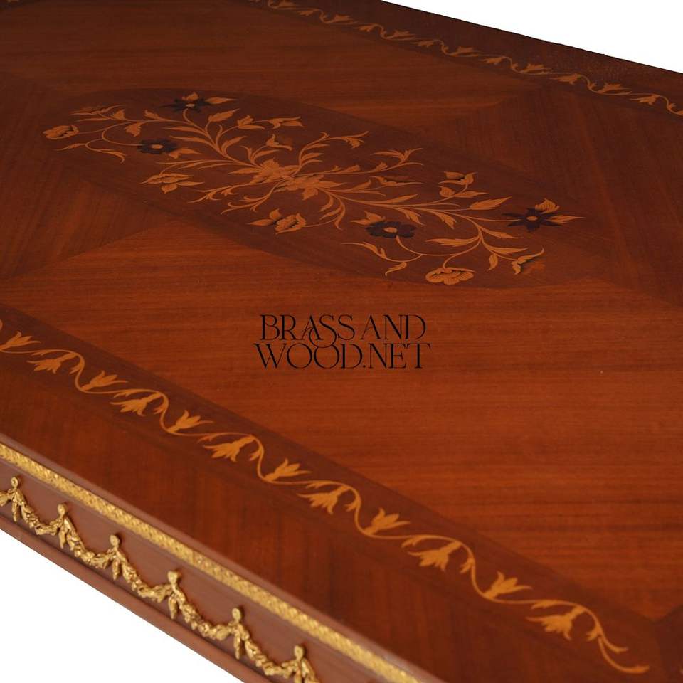 โต๊ะน้ำชาศูนย์ศิลปะการฝังไม้แบบฝรั่งเศส พร้อมงานฝังไม้ทำมือ ตกแต่งด้วยสีทองอย่างหรูหรา และดีไซน์สไตล์ยุโรปคลาสสิก