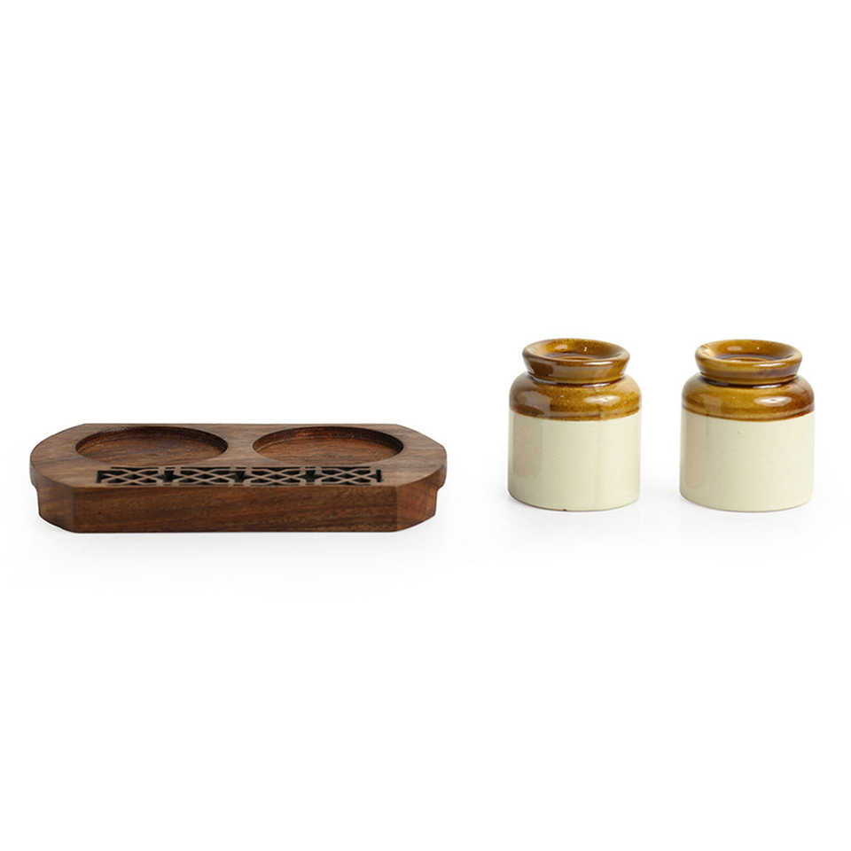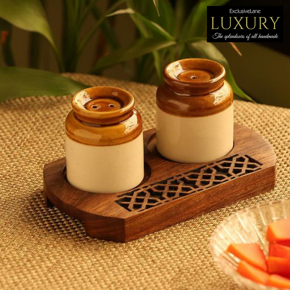 Royal garnishers Old Fashioned martban ชุดเชกเกอร์พริกไทยเกลือเซรามิก sheesham มือแกะสลักโต๊ะไม้อุปกรณ์ตกแต่ง