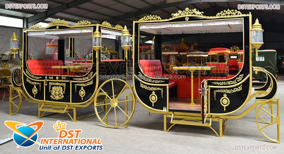 รถม้าทองคำสุดหรู โครงสร้างไม้และโลหะทันสมัย ขนาดปรับแต่งได้สำหรับงานแต่งงาน