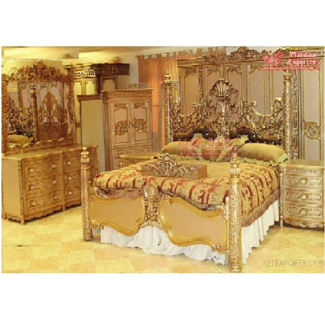 Royal Gold Hand Carved Bedroom Furniture