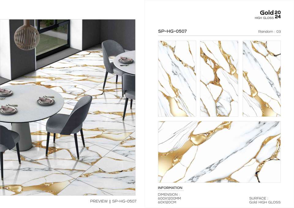 กระเบื้องพอร์ซเลนรอยัลโกลด์ไฮกลอส ขนาด 600x1200 มม. รูปแบบขนาดใหญ่ พื้นผิวขัดเงา พรีเมียม สำหรับตกแต่งผนัง พื้น ภายในและภายนอกอาคาร