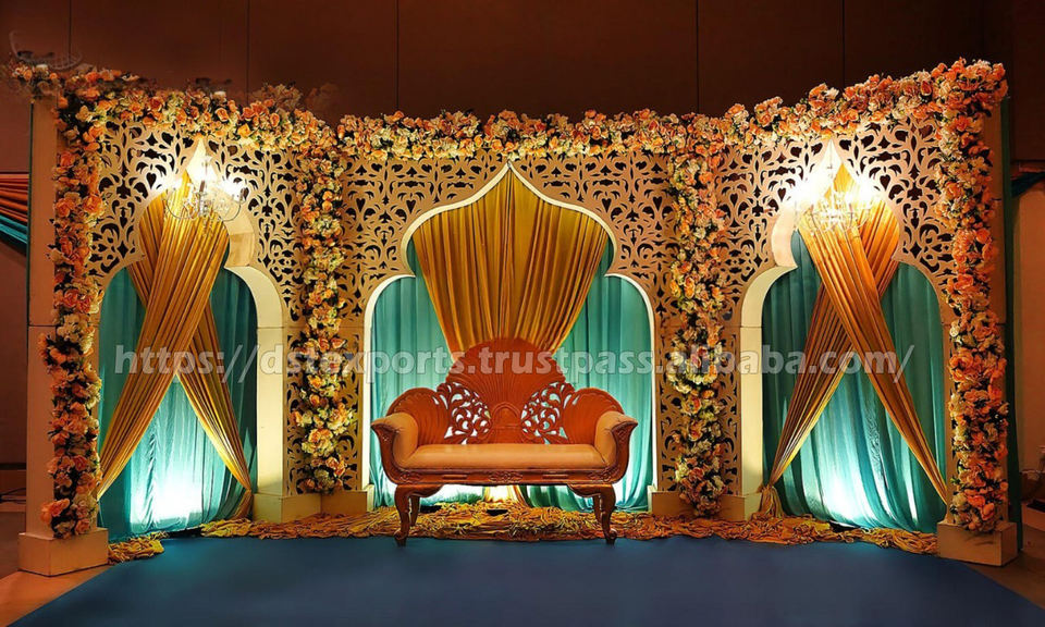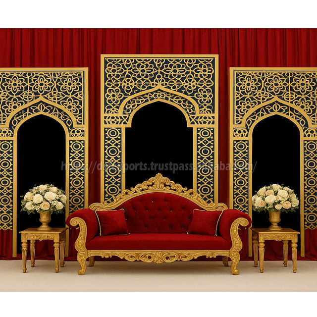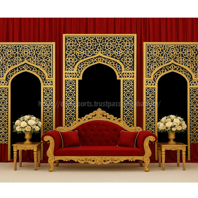 Royal Gold Laser Cut Wedding Backdrop Panels For Stage Decoration