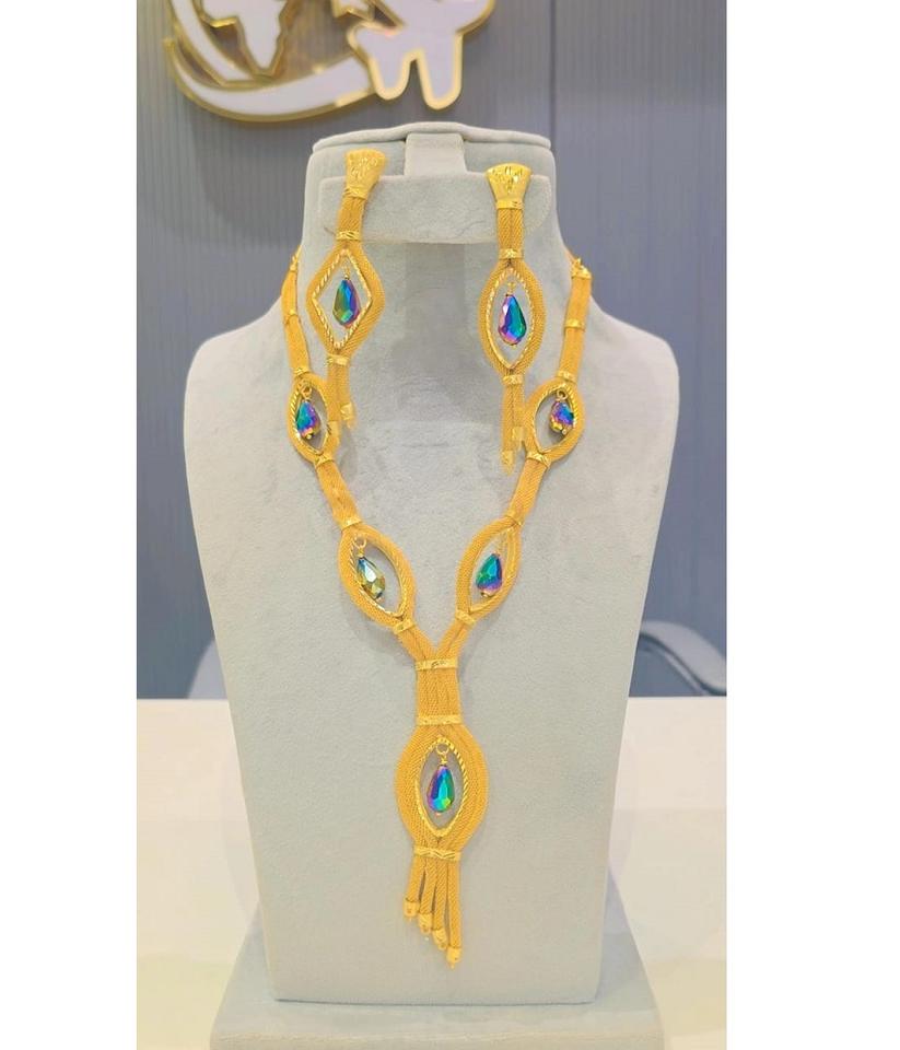 ชุดเครื่องประดับเพชรชุบทองสำหรับผู้หญิงรวมทั้งสร้อยคอแหวน-ชุดของขวัญทำด้วยมือ4ชิ้นสำหรับงานแต่งงาน