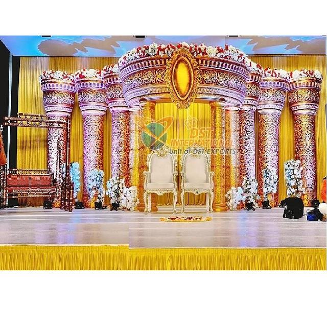 รอยัลโกลเด้นแกรนด์ตกแต่งเวทีแต่งงานพิเศษแกรนด์ Frp ออกแบบจัดงานแต่งงานเวทีจัดงานแต่งงานแกะสลักทอง