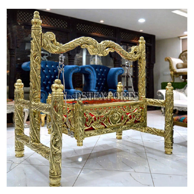 เปลไม้สี่เหลี่ยมผืนผ้าขัดเงาสีทองของราชวงศ์เปลเด็กฟังก์ชันของเด็กสีทองแบบกำหนดขนาดเองได้เฟอร์นิเจอร์บ้านแกว่งเกิดเกิดใหม่