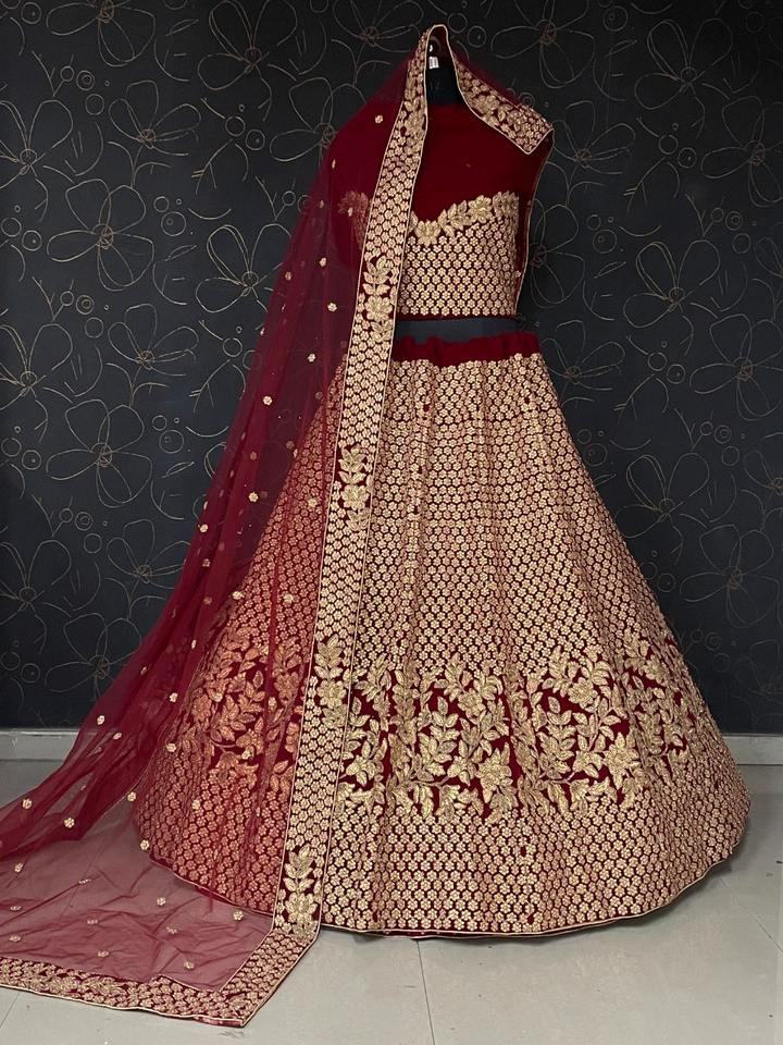 Royal Heavy เสื้อเชิ๊ตผ้ากำมะหยี่ปักลาย,เสื้อเชิ๊ตผ้ากำมะหยี่มีพู่และผ้ามุ้ง Dori Work Lehenga Choliwith