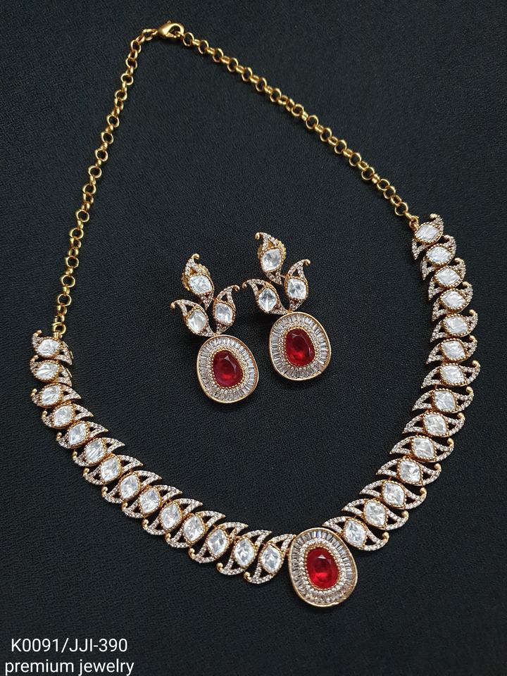ชุดสร้อยคอ Kundan สีทองเข้มประดับด้วยหินสีแดงทับทิมชุดสร้อยคอและต่างหูที่ละเอียดอ่อนแบบดั้งเดิมที่สง่างาม