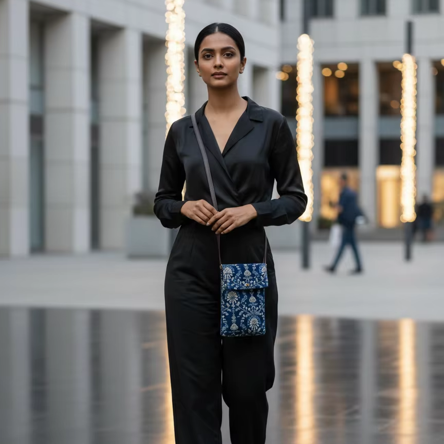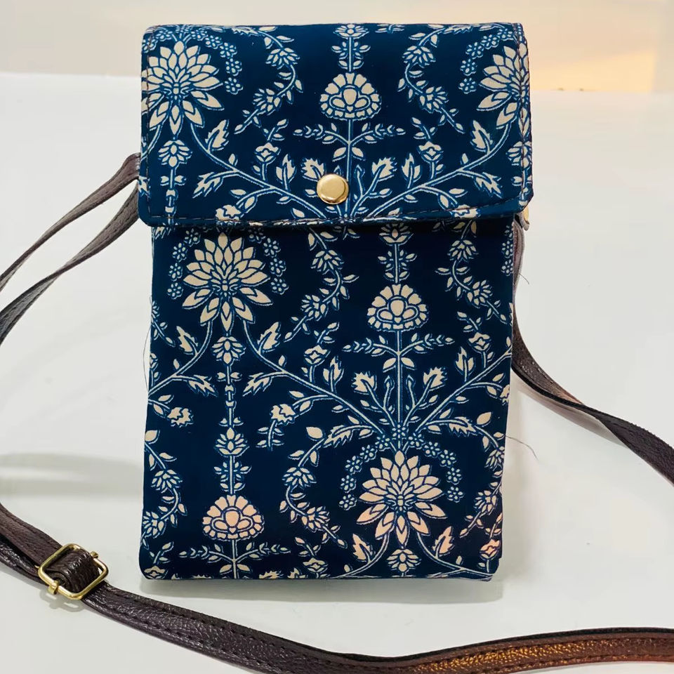 กระเป๋าสะพายข้าง Royal Indigo Floral Heritage ดีไซน์ทันสมัย นุ่มสบาย หรูหรา สไตล์ชาติพันธุ์ ขนาดมินิ สำหรับผู้หญิง