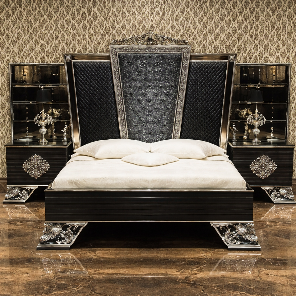 ชื่อผลิตภัณฑ์:เตียงคู่ขนาดคิงไซส์พร้อมโต๊ะข้างเตียง