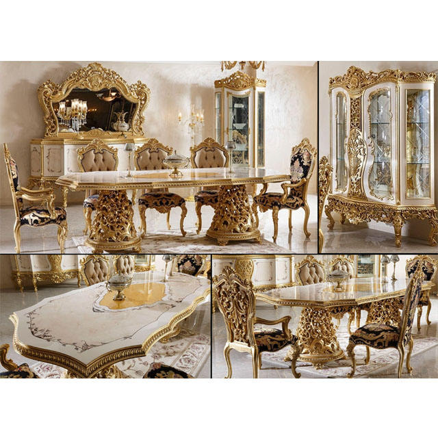 Royal King Wooden Golden Carved Dining Table SetProduct name