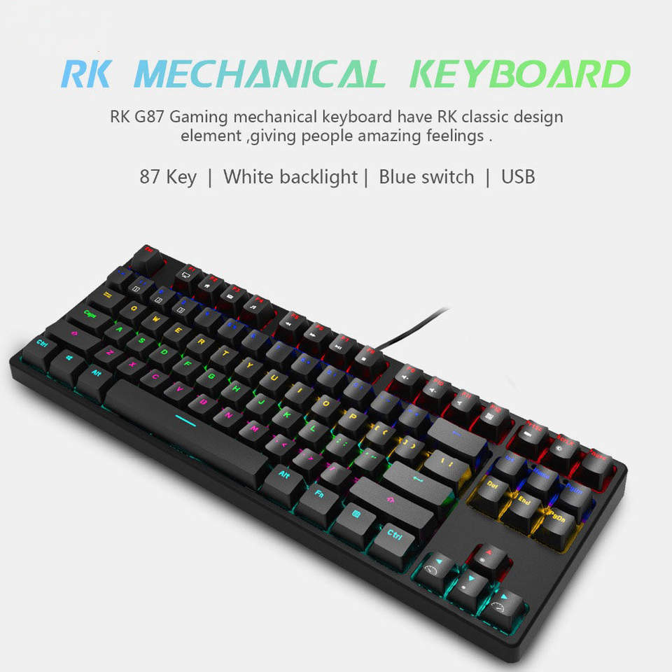 คีย์บอร์ดเกมมิ่งแบบมีสาย Royal Kludge RK987 RK 87 ปุ่ม สวิตช์สีน้ำตาลแบบถอดเปลี่ยนได้ รองรับการเชื่อมต่อแบบไร้สาย RGB สำหรับคอมพิวเตอร์พีซี