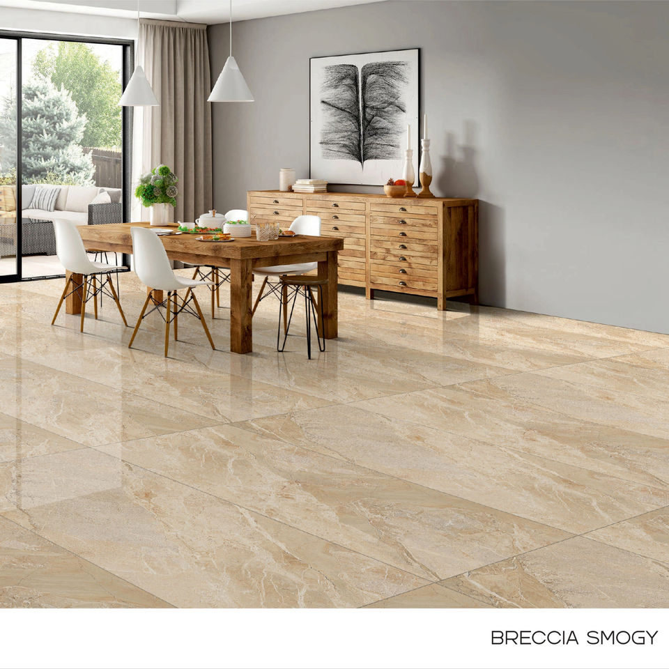 กระเบื้องพอร์ซเลนลายหินอ่อนขนาดใหญ่ รุ่นรอยัล ผิวมันเงา ขนาด 600x1200 มม. สำหรับปูพื้นและผนังทั้งภายในและภายนอกอาคาร