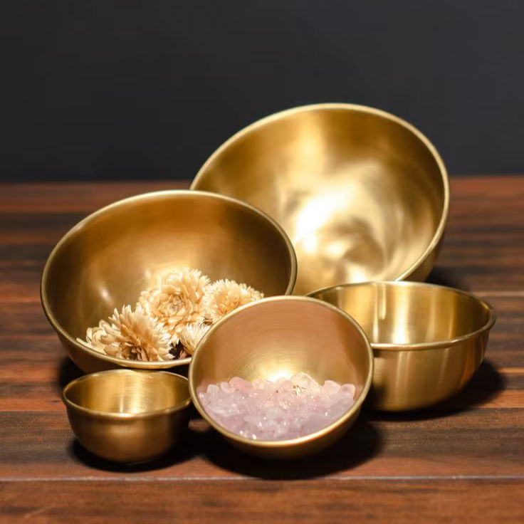ถ้วยทองเหลืองที่เสิร์ฟพร้อมความเงางามสวยงามเหมาะอย่างยิ่งสำหรับการรับประทานอาหารและโอกาสในเทศกาลอันหรูหรา