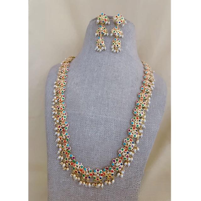 Jadau สร้อยคอไข่มุกชุบทองดูสวยงามพร้อมต่างหูสำหรับผู้หญิงเครื่องประดับออกแบบสำหรับสวมใส่ในงานแต่งงาน