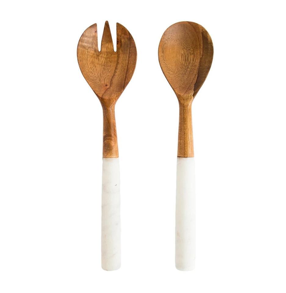 ชุดสลัดไม้มะม่วง Royal Look พร้อมด้ามจับหินอ่อนสีขาว สำหรับใช้ในบ้านและงานแต่งงาน