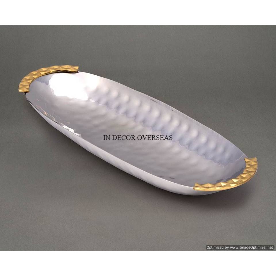 Royal Llook ถาดเสิร์ฟพร้อมด้ามจับชุบทอง, ทำจากโลหะเคลือบเงาสีเงิน