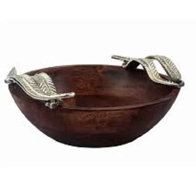 ชามไม้ดีไซน์หรูหราพร้อมหูจับโลหะ ชุดอาหาร ชามไม้ดีไซน์สวยงาม ชามเสิร์ฟแป้งขัดเงา ใช้ในบ้าน โรงแรม ร้านอาหาร