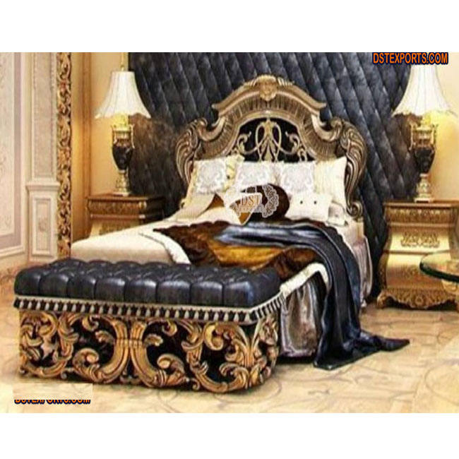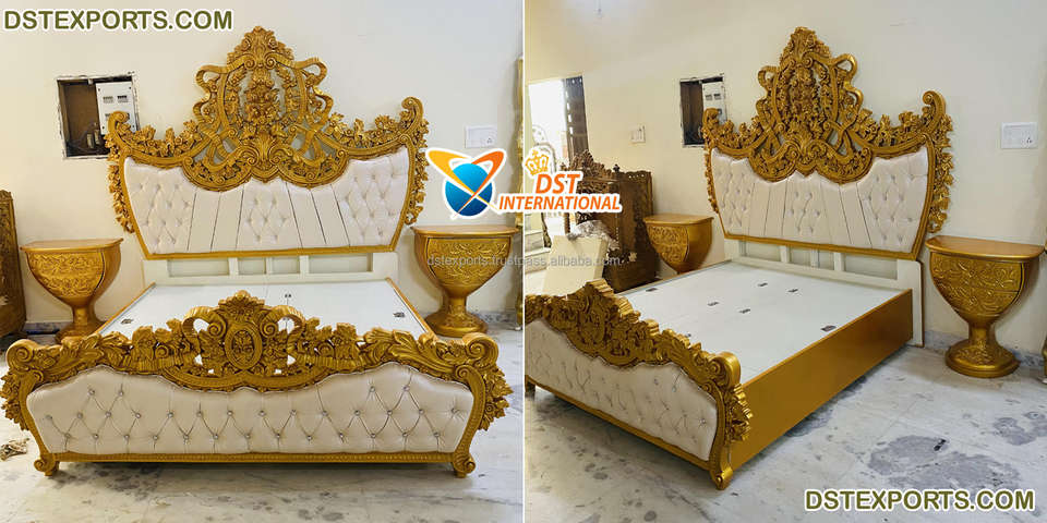 Royal Maharaja King Size Bedroom Furniture Exclusive Handmade Bed With Nightstands Beautiful Hand Carved Bed With Nightstands