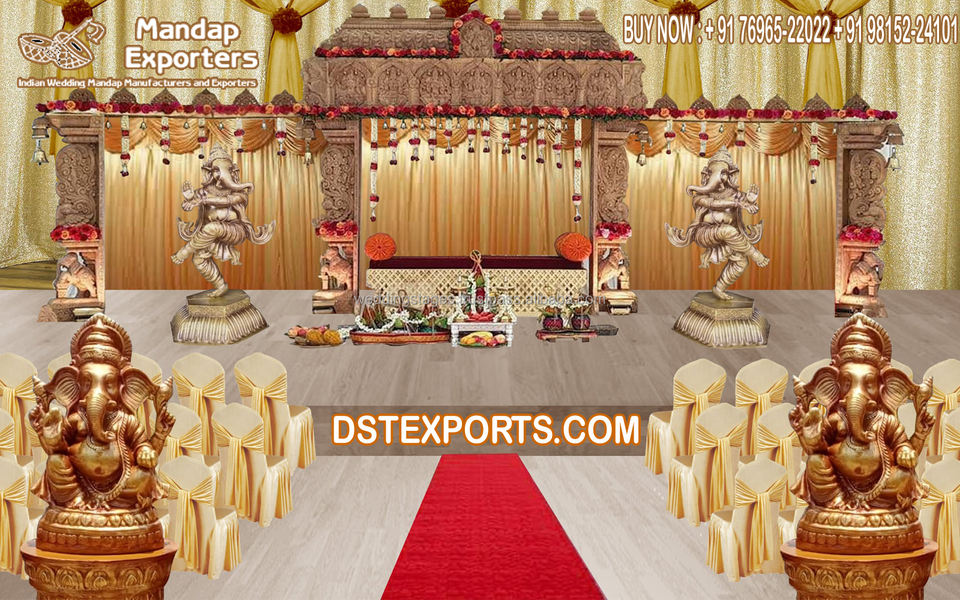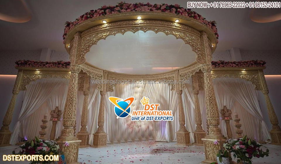 มณฑปงานแต่งงานแบบไม้ลายไม้ รุ่น Royal Marriage พร้อมฐานสามเสาแบบ Punjabi สำหรับพิธีแต่งงานกลางแจ้ง มณฑปงานแต่งงานไฟเบอร์ ลอนดอน
