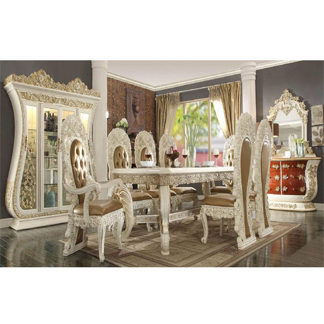 Royal Palace ชุดทานอาหารที่บ้านไม้สัก,ชุดแกะสลักห้องอาหารสไตล์รอยัลคิงหรูหรา8ที่นั่งเฟอร์นิเจอร์ภายในบ้านห้องอาหาร