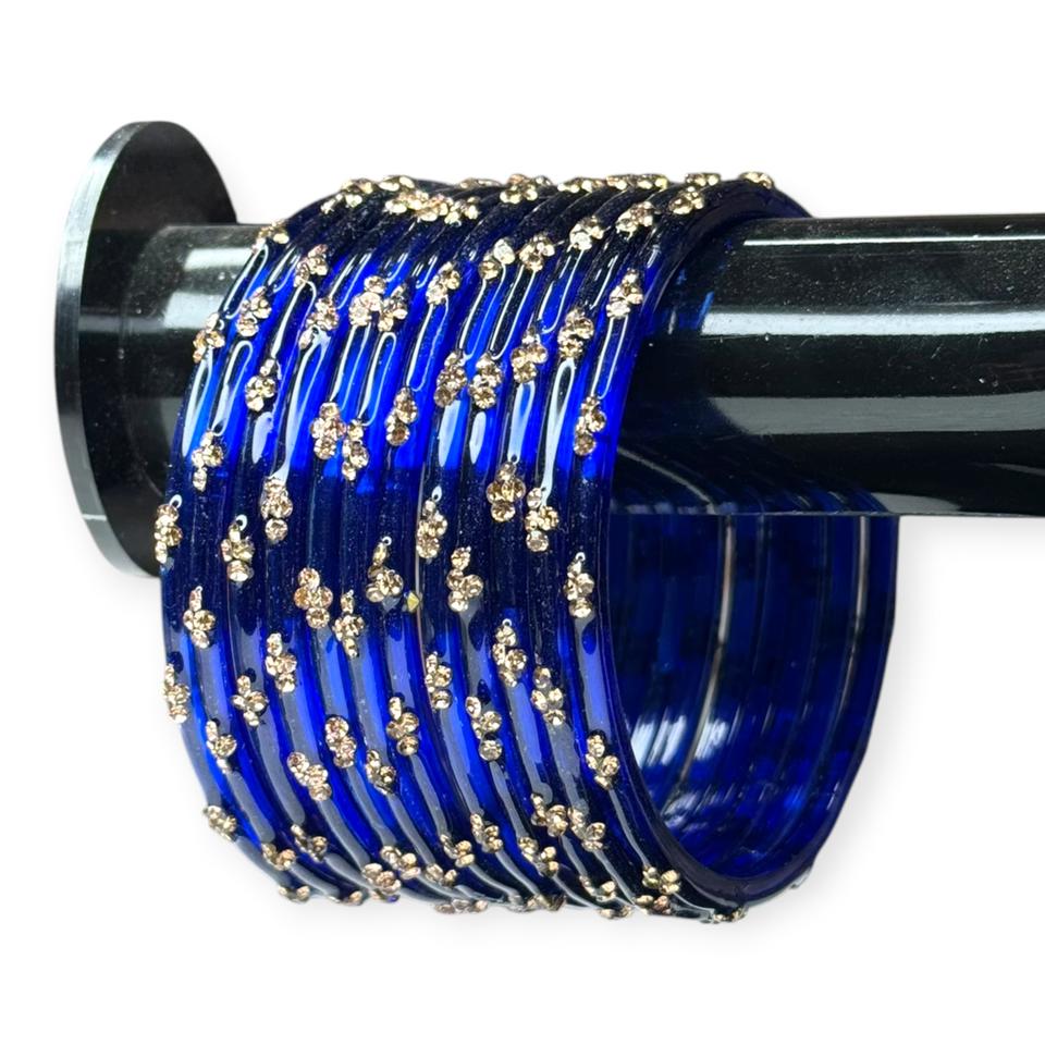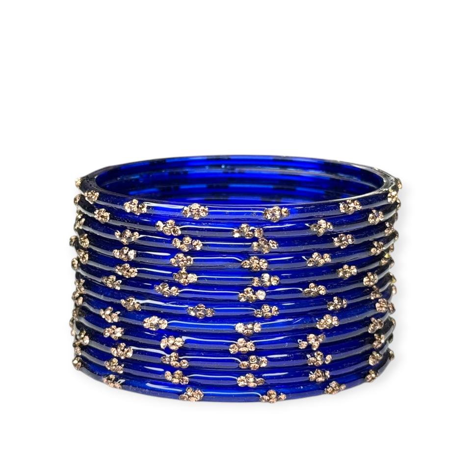 กำไลข้อมือแก้วสีน้ำเงินรอยัลเรนดรอปแบบแคชเมียร์ ประดับมุกเทียมชุบทอง ชุดงานแต่งงานพรีเมียมสำหรับผู้หญิง