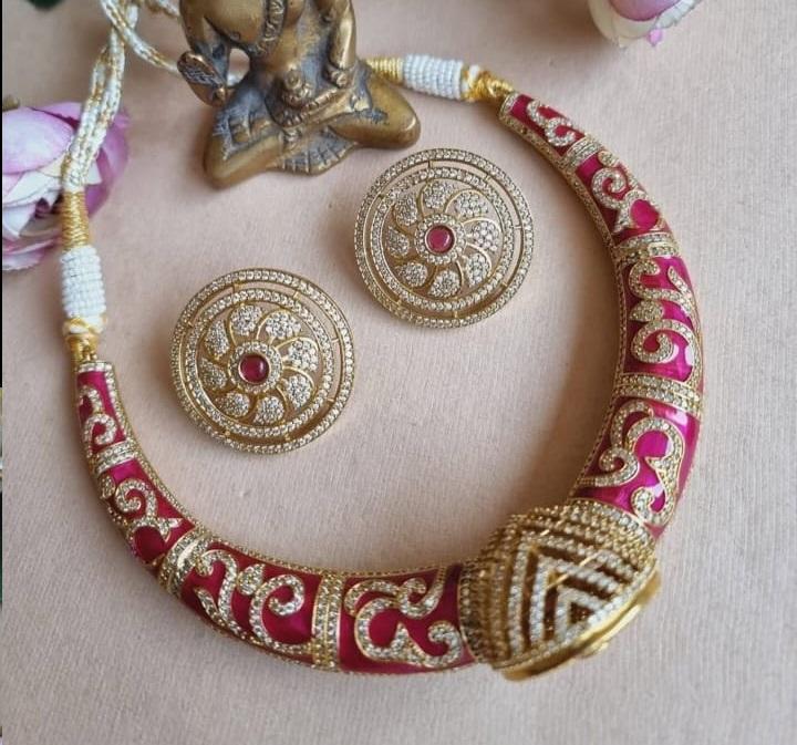 ชุดโช้คเกอร์ทับทิมทับทิมทับทิมประดับมุกทองและทองชุดหินลายโบราณสำหรับเจ้าสาวสำหรับงานแต่งงานของขวัญ
