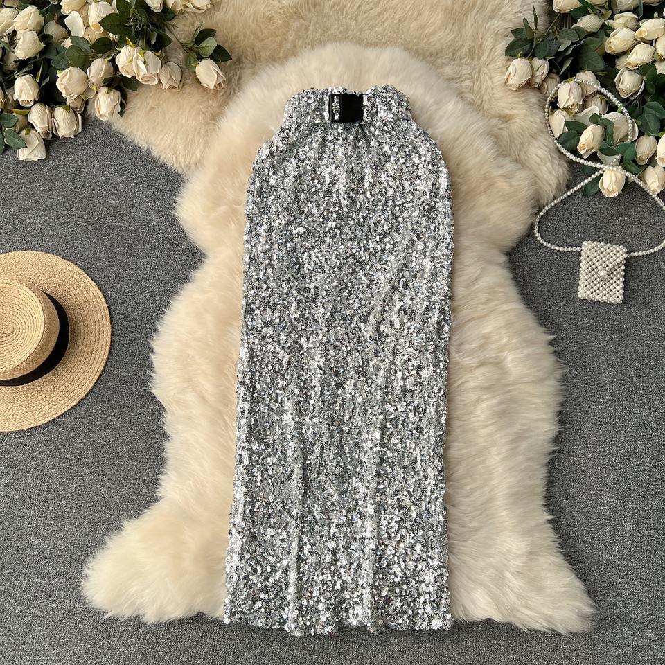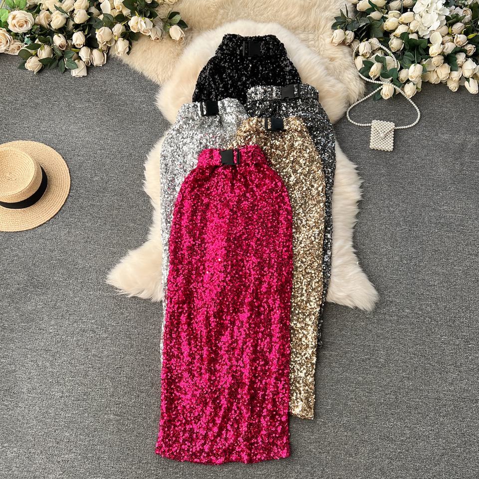 รอยัลซิสเตอร์สวมกระโปรงอินสตาแกรมสำหรับผู้หญิงกระโปรงยาวเต็มตัวพร้อมเข็มขัดทรงสลิมฟิต