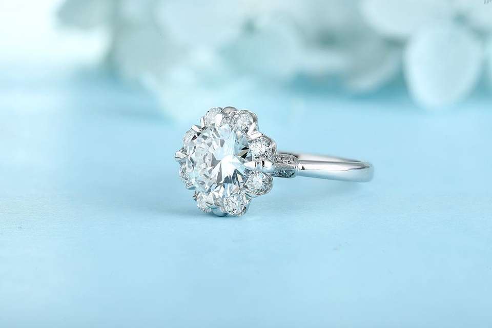 Royal Spark แหวนเงินประดับเพชรสำหรับปลูกในแล็บแนววินเทจได้รับการรับรองว่ามีไฟไม่สิ้นสุด IGI ทรงกลมตัดได้อย่างยอดเยี่ยม