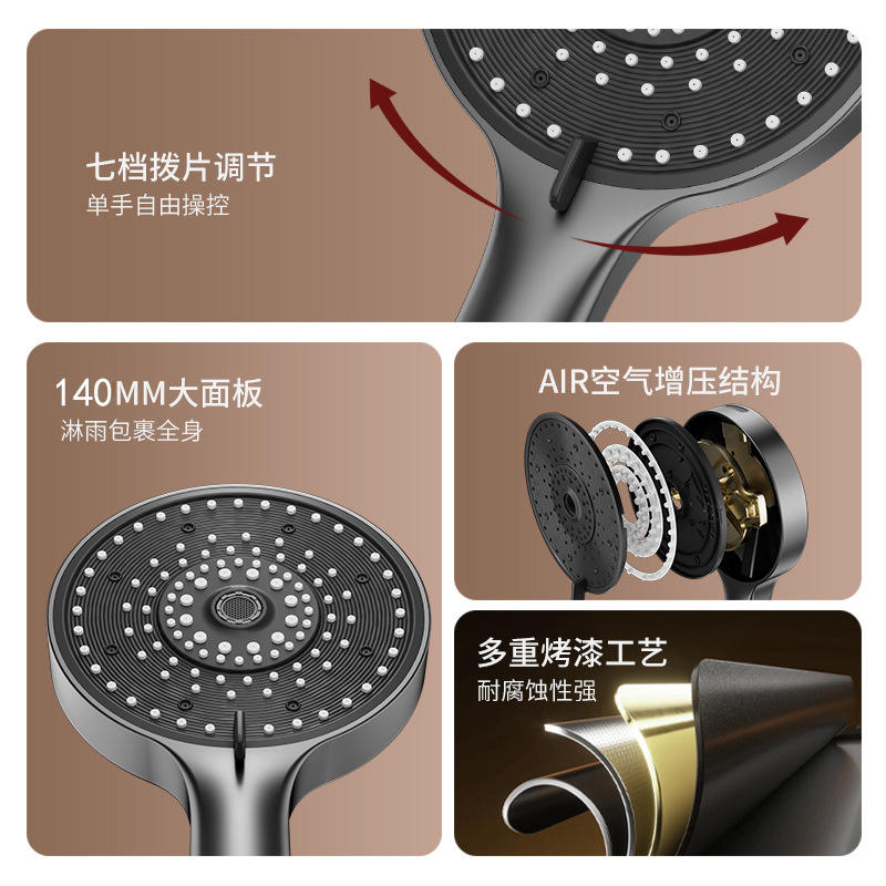 หัวฝักบัวขนาดใหญ่พื้นที่กว้าง 14 ซม. แบบ 7 ระดับ