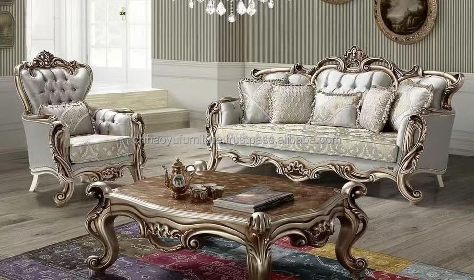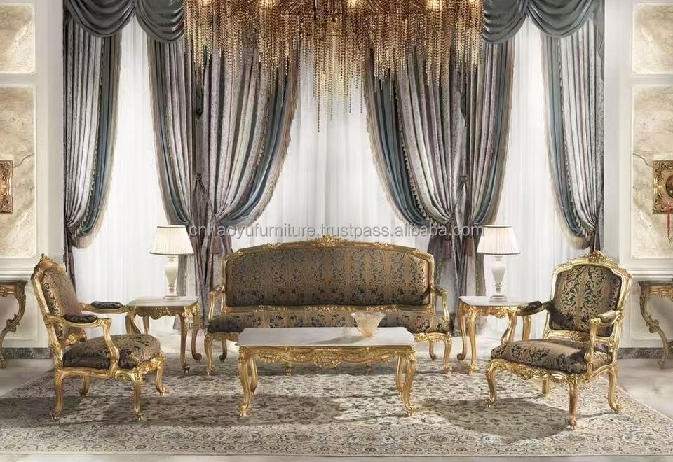 ชุดห้องนั่งเล่นสไตล์วิคตอเรียนโบราณ คลาสสิค โรยัล ลายดอกไม้ ผ้าหุ้มไม้แกะสลักด้วยมือ แบบอินดัสเทรียล เป็นมิตรกับสิ่งแวดล้อม ยี่ห้อ HAOYU