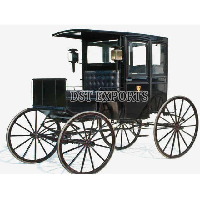 รถม้าแบบลากสี่ล้อสีดำมีหลังคาสำหรับตกแต่ง