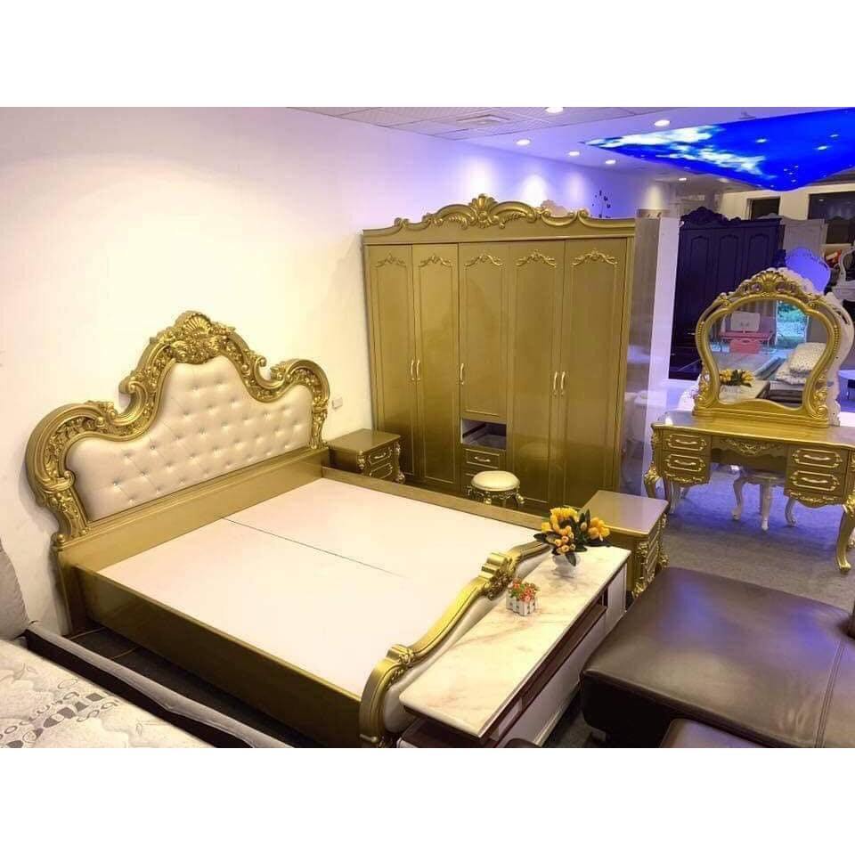 เตียงไม้เนื้อแข็งโบราณขนาดคิงไซส์ สไตล์ราชวงศ์