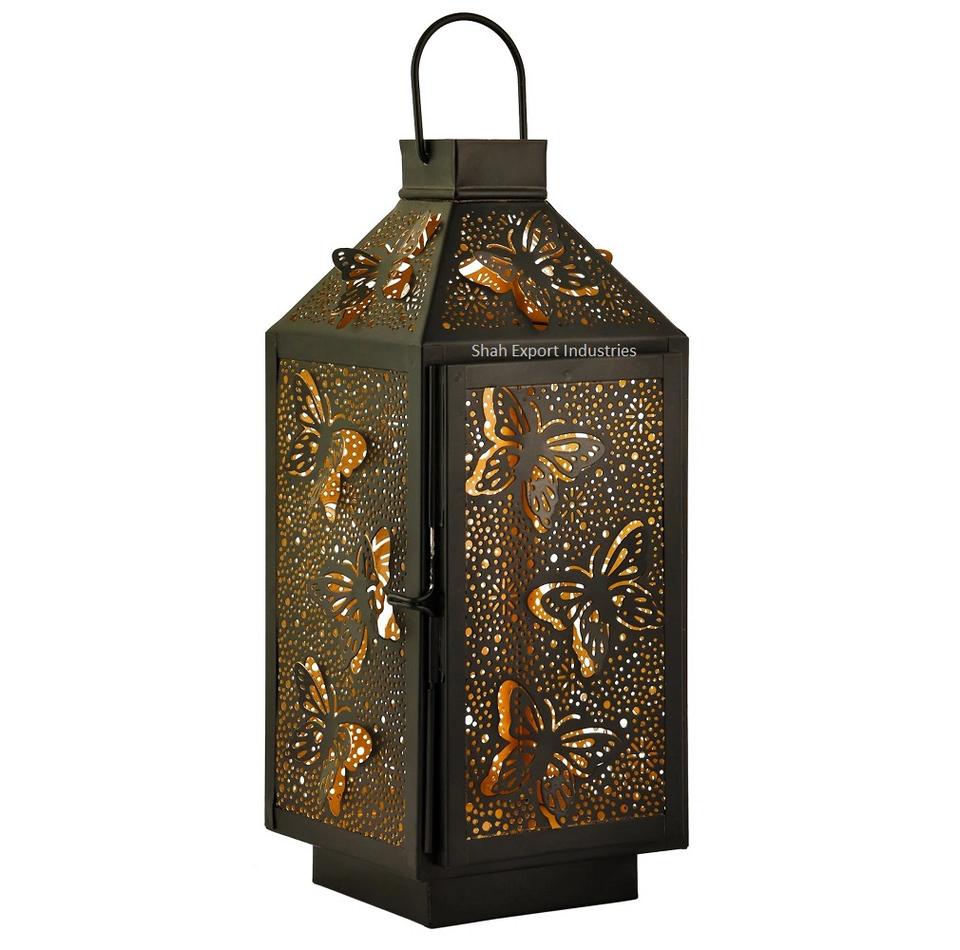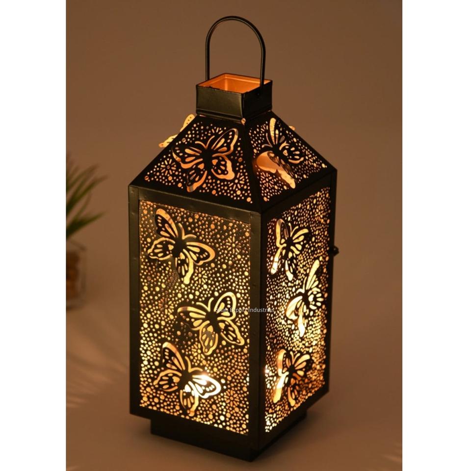 โคมไฟเทียนเหล็กผีเสื้อสไตล์ราชวงศ์โคมไฟตกแต่งสำหรับบ้านและงานแต่งงานสีดำ