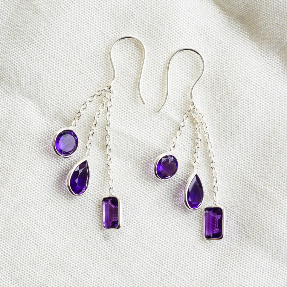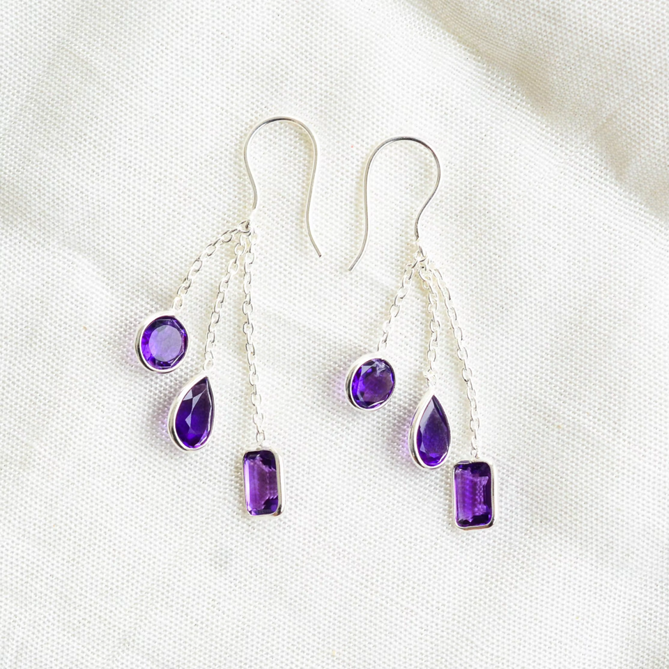 ต่างหูพู่ห้อยทรงเรขาคณิตประดับพลอยอเมทิสต์ทรงกลม ดีไซน์ทันสมัยสำหรับผู้หญิง