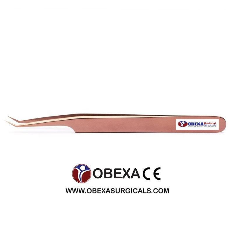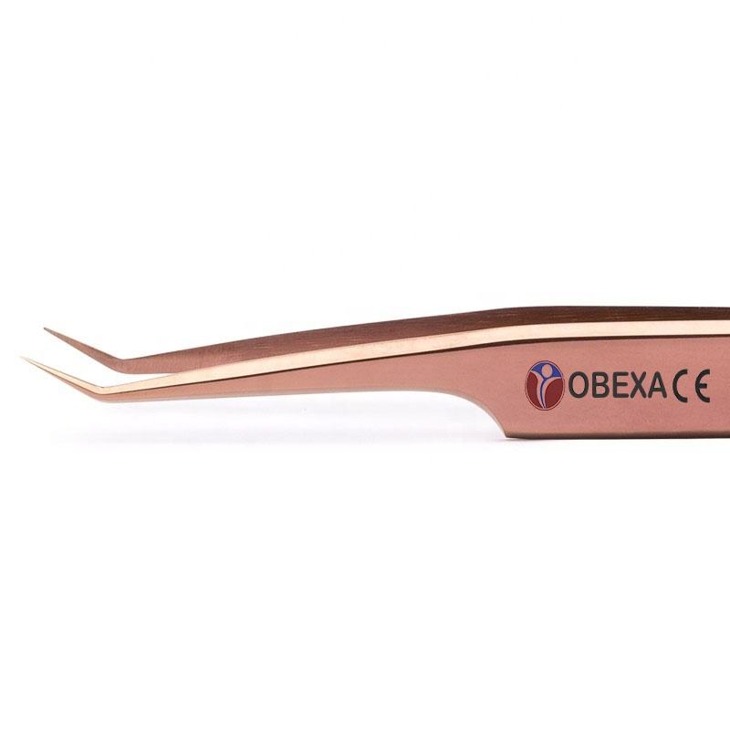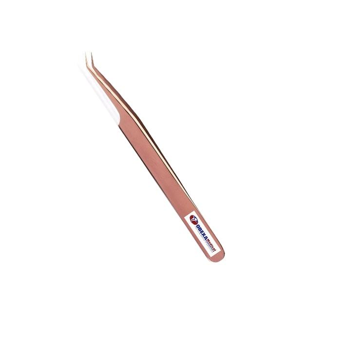 Royal Tweezer OBR-400544 12cm Rose Gold Stainless Steel Volume Eyelash Extension Tweezers 45 Degree with Rounded Tip
