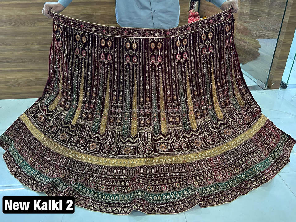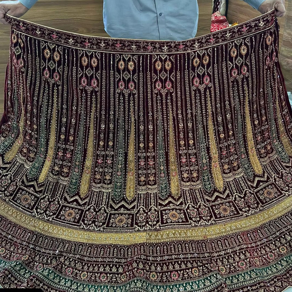 WORK:11000 VELVET LEHENGA HEAVY JARKAN WORK CUT PASTE WORK